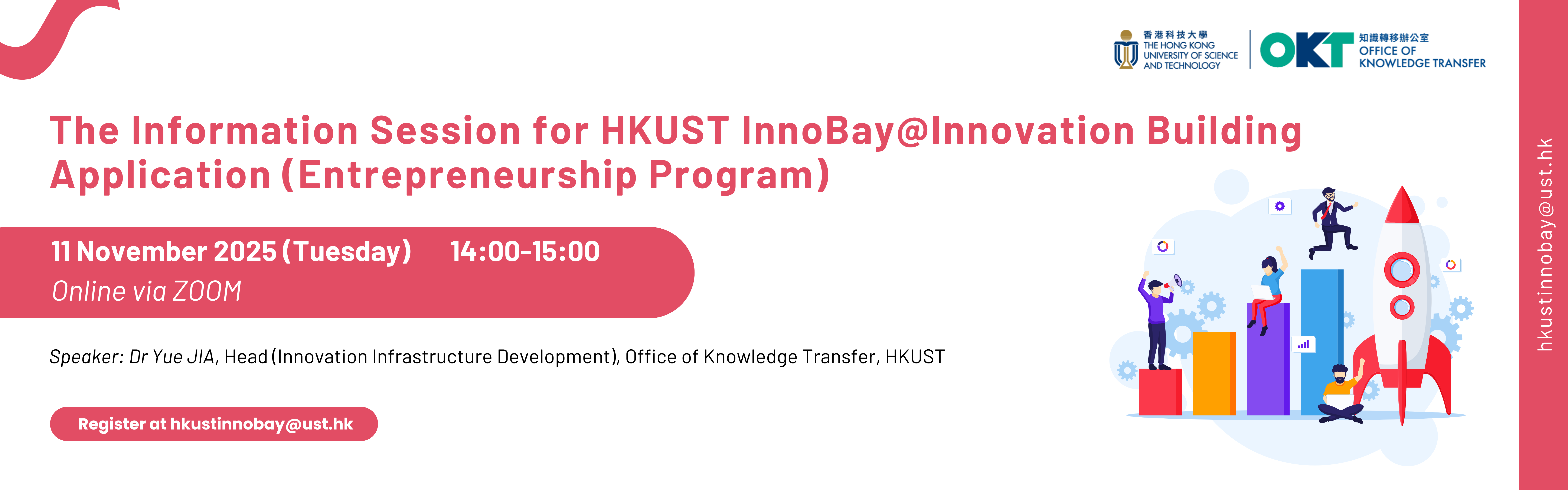 The HKUST InnoBay aims to establish a global infrastructure to support the University's knowledge transfer activities, bridging the gap between research and the creation of future unicorns. More than just a physical space for startups, InnoBay is dedicated to cultivating a comprehensive ecosystem rooted in the HKUST spirit. It serves as a hub for HKUST entrepreneurial leaders, fostering innovation and business growth with the distinctive "HKUST Gene.“ (Rotating Images: InnoBay @ IB photo, InnoBay Map, HKUST Events like Unicorn Day, IED+, Founders Club, Show/Event, better without “Year info”