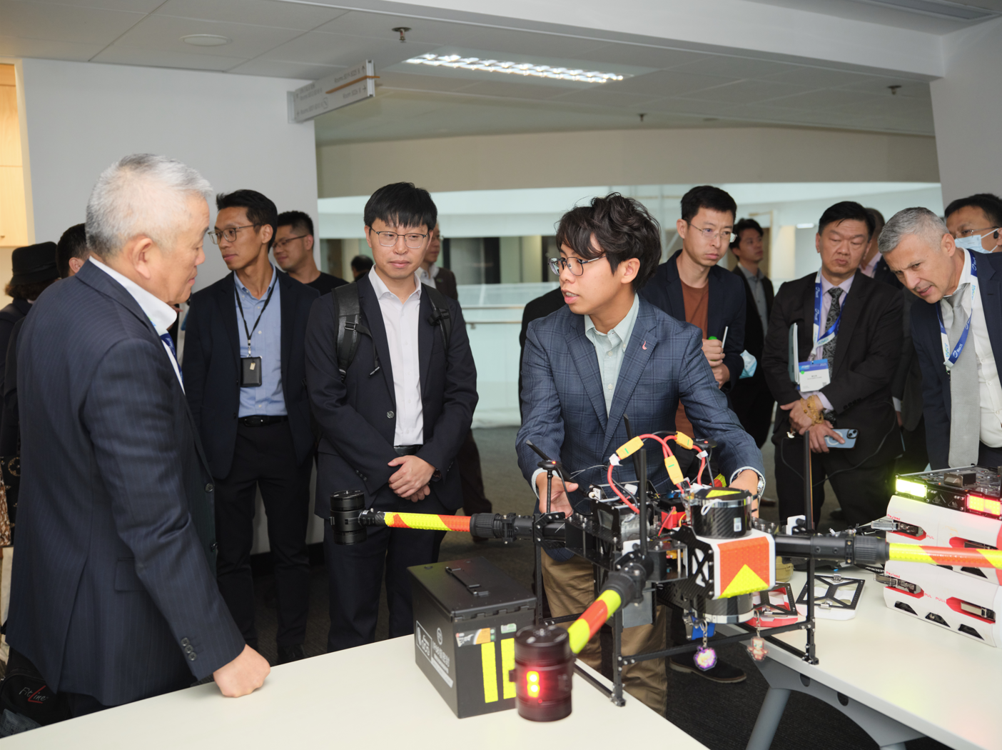 The itinerary included presentations and demonstrations on the Centre’s ongoing research, spanning areas such as unmanned aerial systems, airspace management technologies, and smart logistics applications. The delegation also visited the Logistics and Supply Chain Multi-Technology R&D Centre (LSCM) to observe how low-altitude technologies integrate with next-generation supply chain solutions.